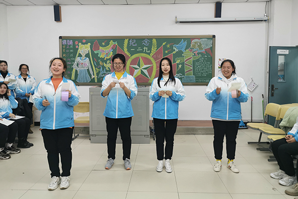 晚自习期间,全院各团支部开展了形式多样的主题团日活动。同学们通过观看历史影片深入了解当时国家和民族所面临的危机,通过知识竞答、诗朗诵、共唱爱国歌曲、宣传板报等活动形式,围绕“12•9”运动的背景与重要意义,共同感受全国抗日民主运动的新高潮和自强不息的精神力量。