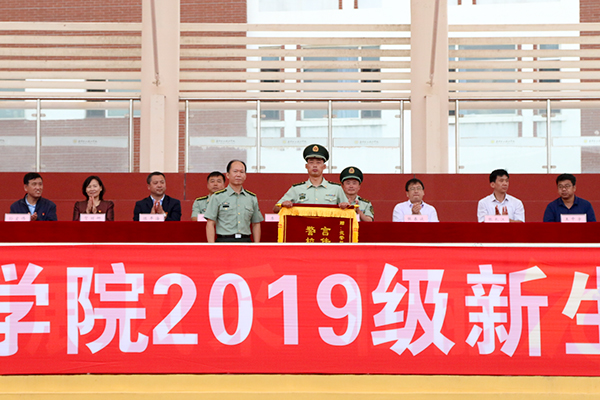 汇报表演结束后,孙景峰教导员宣读了军训先进个人与先进集体名单。有187名同学获得军训先进个人荣誉称号,有29个排获得了军训先进集体荣誉称号。接下来,学院党委副书记、武装工作部部长李兵为承训部队赠送锦旗,衷心感谢对学院2019级新生军训工作的大力支持和辛勤付出。