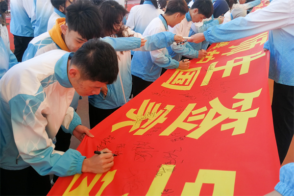 为深入学习贯彻习近平新时代中国特色社会主义思想,坚持总体国家安全观,着力防范化解重大风险,全面提升全院师生国家安全意识,在全国第四个“全民国家安全教育日”到来之际,4月15日早晨,在学院体育场开展了“2019全民国家安全教育日”师生签字活动。学院学生工作处、武装工作部、安全保卫处、团委、各分院系的领导、老师及全体在校学生参加了活动。此次活动由武装工作部王俊杰老师主持。