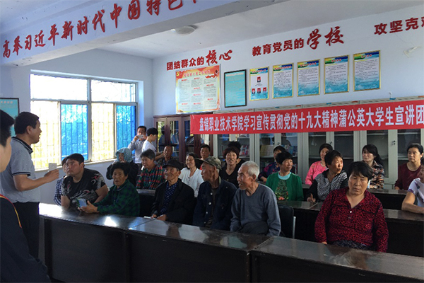 此次“三下乡”活动主要是大力宣传党的十九大精神,坚定用习近平新时代中国特色社会主义思想,推动党的十九大各项部署在坝墙子镇落地生根、全面贯彻落实新发展理念,建设现代化经济体系,加快推动经济建设、坚定文化自信,推动文化事业和文化产业发展,坚持扶贫与扶志扶智相结合。青年志愿者们利用专业所学,开展了护理急救保健、防范金融诈骗知识、红色教育宣讲活动,到坝墙子镇幼儿园为小朋友带来了新式幼儿教学方法,到敬老院为当地孤寡老人送爱心、送温暖,并表演了精彩的节目;下午又深入到坝根子村,为村民们进行血压、血糖、心电图等义务测量,受到了大家的欢迎。