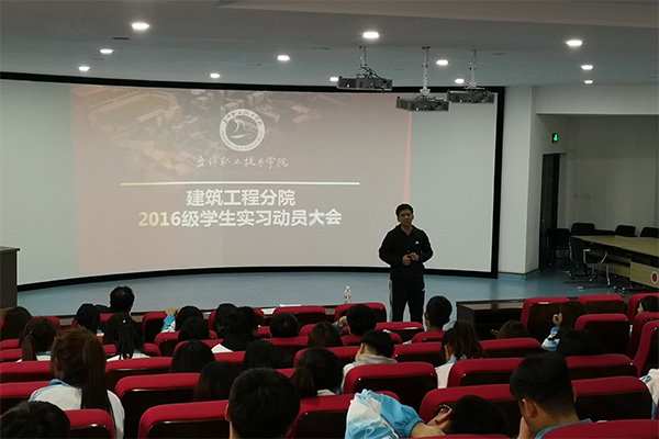 首先,分院院长郑敏丽围绕顶岗实习的目的和意义、对学生顶岗实习期间的要求、专升本考试以及实习就业优秀典型等四个方面做了实习动员讲话。她要求同学们积极摆正实习心态,迅速完成角色转变;实习期间能够严格遵守实习纪律,为学院和分院争得荣誉;树立学习观念,熟练掌握专业技能,增强就业竞争优势。她希望同学们珍惜实习机会,努力学习实践技能,以崭新的精神风貌、朝气蓬勃的工作热情,科学规范的学习态度,圆满完成顶岗实习任务。随后,郑院长就专升本考试方面向同学们进行了详细讲解,鼓励同学们提前备考,升入自己理想的本科学校继续深造,为就业和自身发展搭建更广阔的平台。会上,还向2016级实习生展示建筑工程分院往届学生实习就业的优秀典型。 最后,分院邀请辽河口生态经济区建设工程质量安全站安全专家周建作了题为《建筑专业实习学生入场安全教育》的专题讲座。党总支书记张长江围绕在实习期间的态度、安全问题及学院相关规定作了动员讲话,他指出,同学们要在实习期间要克服困难,迎难而上,以分院集体荣誉为目标严格要求自己,努力提高自身综合能力。副院长于德国讲解了实习协议、网上实习日志、实习报告的相关要求。
