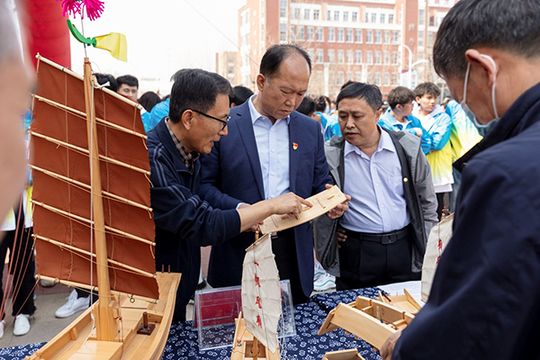 在活动现场,师生们认真地观看非遗项目传承人的操作手法,传承人则耐心地解答着师生们提出的问题。