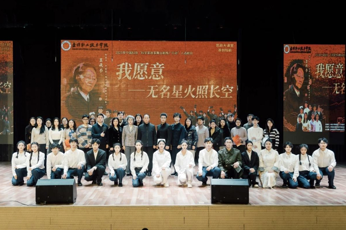 为深入贯彻落实中国科协、教育部、文化和旅游部、中国科学院、中国工程院、共青团中央、中国文联等七部委联合印发的《关于2025年“科学大师宣传工程”工作安排的通知》精神,推动科学家精神进校园走深走实,2025年12月12日下午,由我校师生自编自导自演的原创短剧《我愿意——无名星火照长空》在校文化中心演播厅隆重首演。学校党委副书记李兵,团委、思政教研部师生代表共700余人齐聚一堂,共同观看这场由我校青年学子演绎的忠诚与奉献之歌。现场反响热烈,掌声如潮,感人至深。