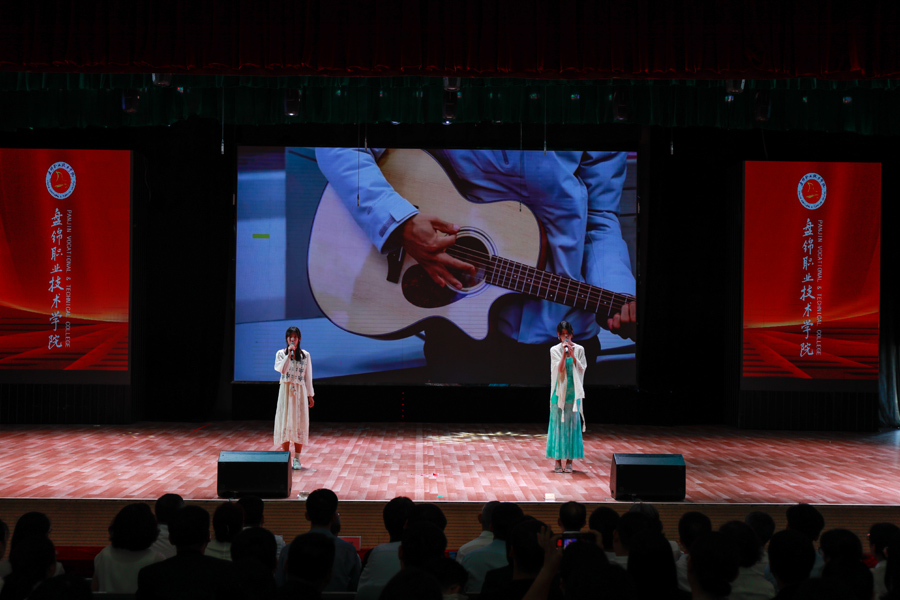 典礼上,辅导员用诗朗诵《逐梦校园的青春印记》为2025届毕业生送上深深祝福。